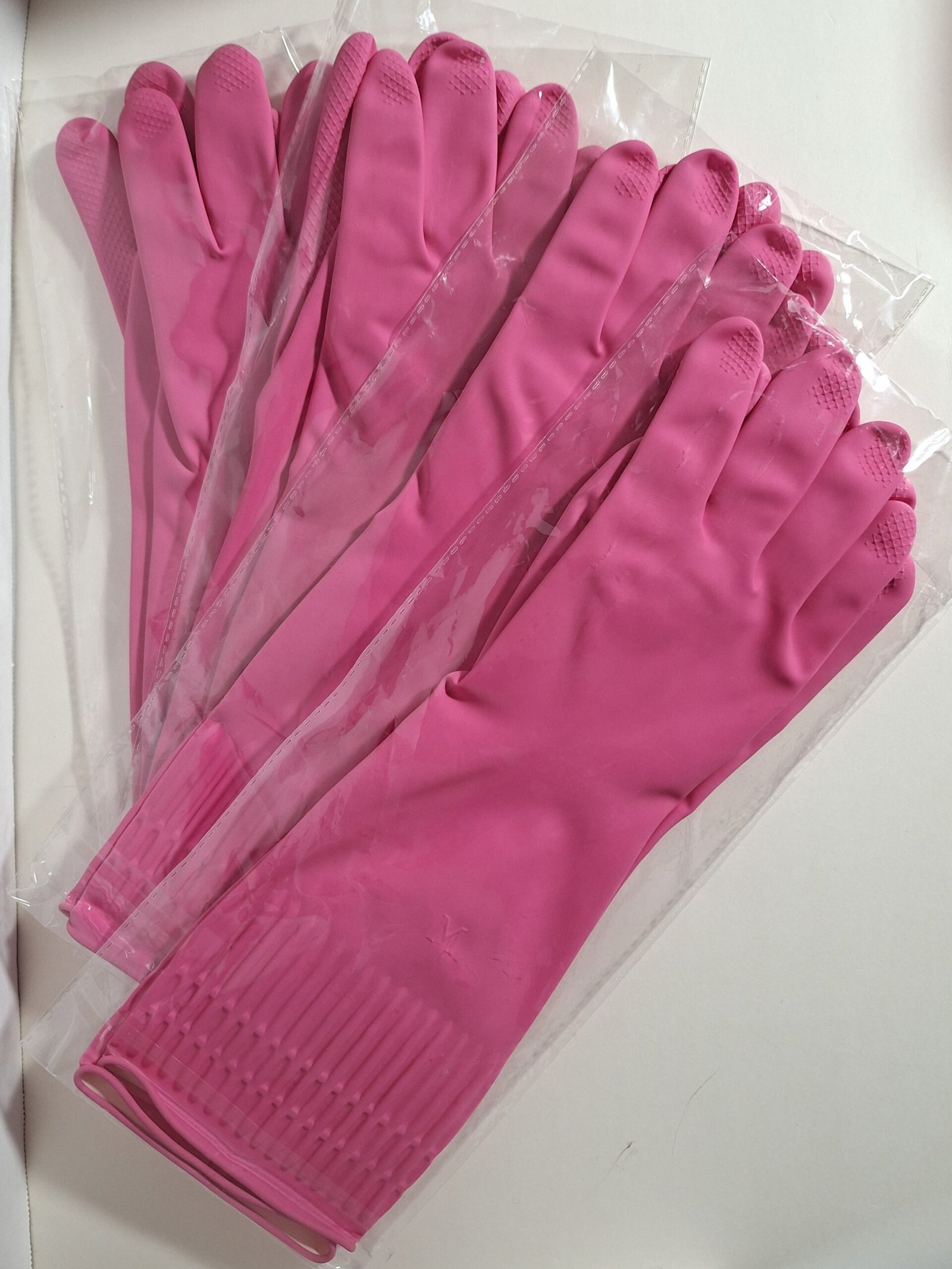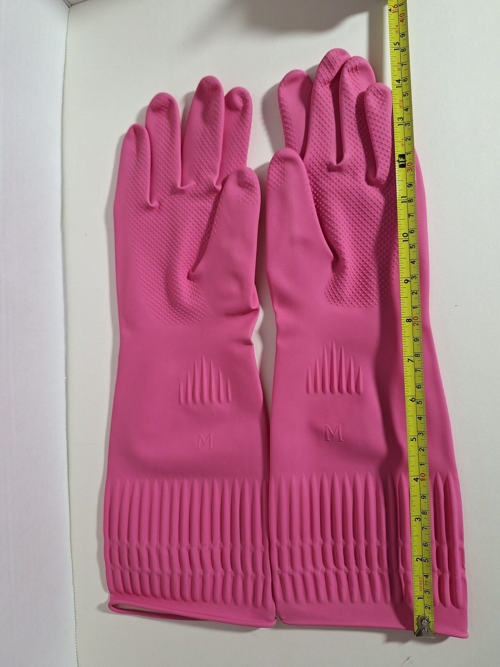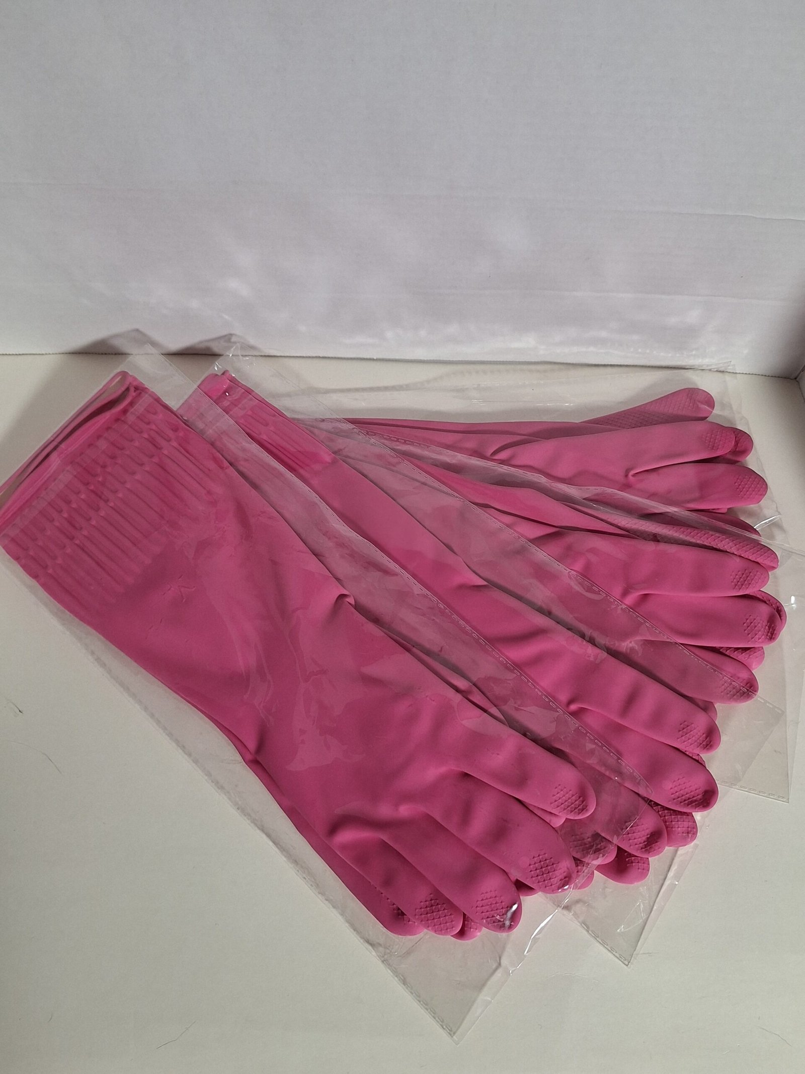 4 Pairs Rubber Kitchen Gloves , Pink, Size Medium, Dishwashing, Cleaning